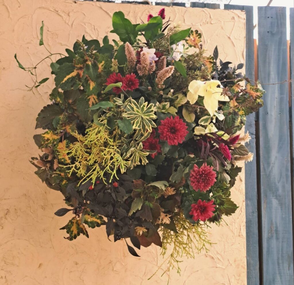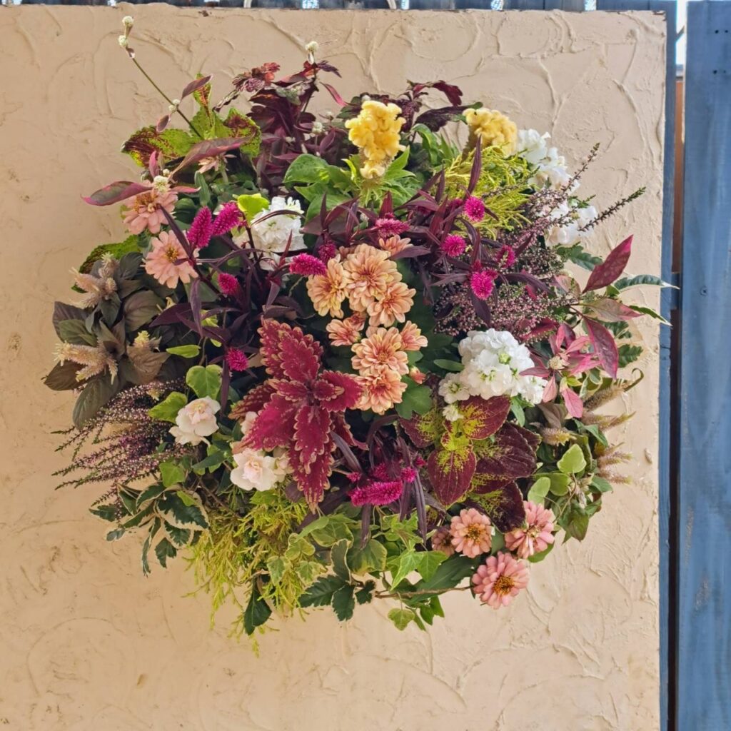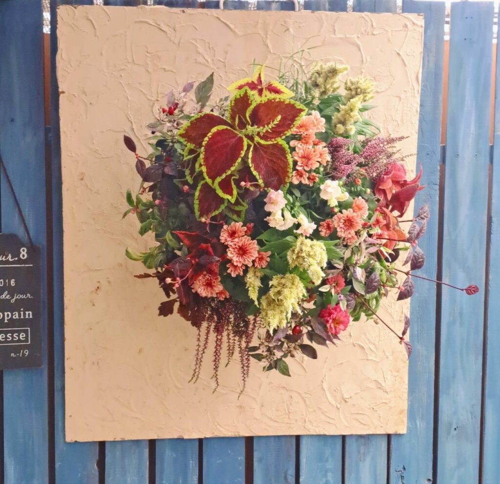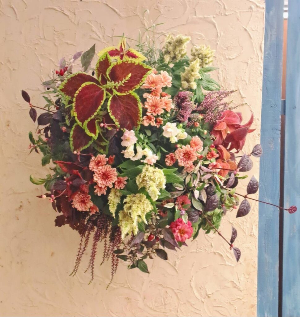 気温の変化で綺麗に発色したコリウスにおもしろみや趣を添えた作品。