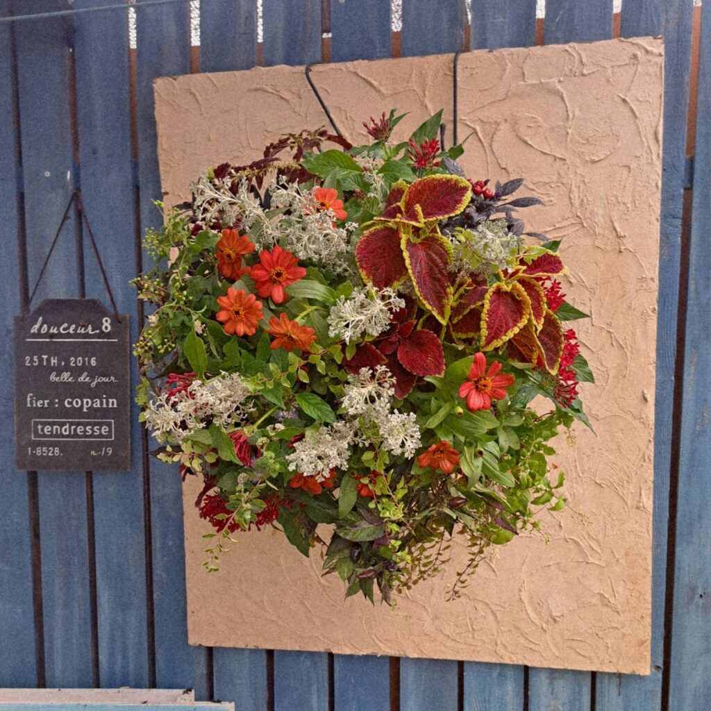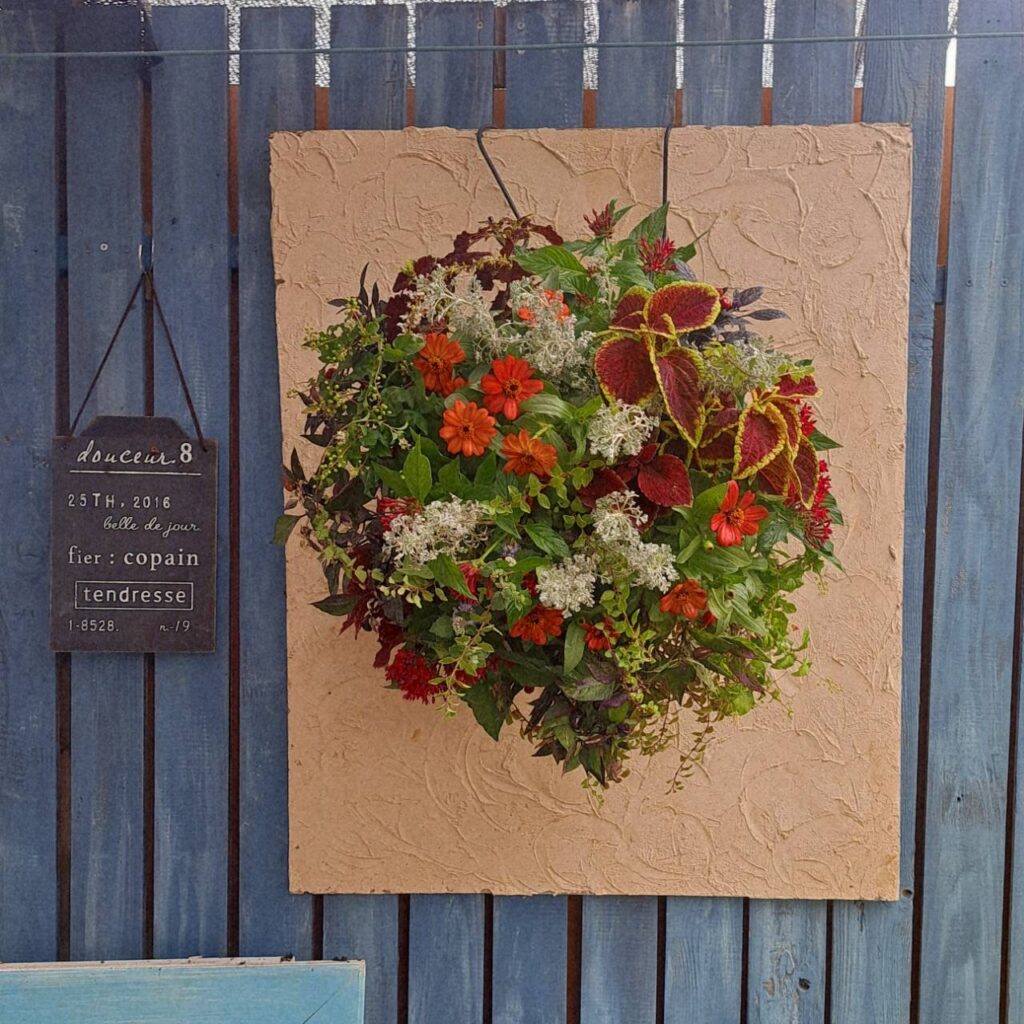 ①ブーゲンビリア、真っ赤なペンタスやニチニチソウが醸し出す情熱的な作品です。まるで「私の夏はまだまだ終わらない」と言っているかのように…
