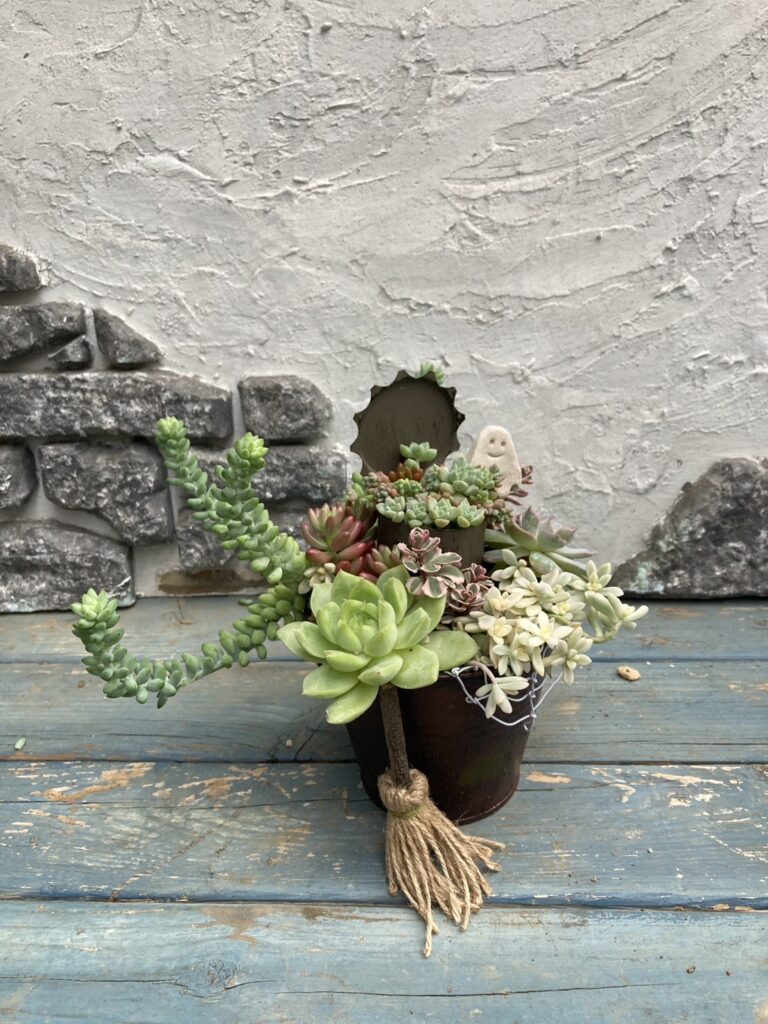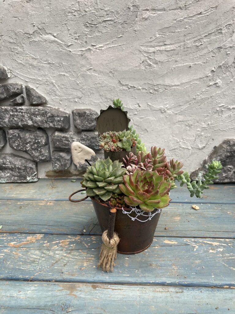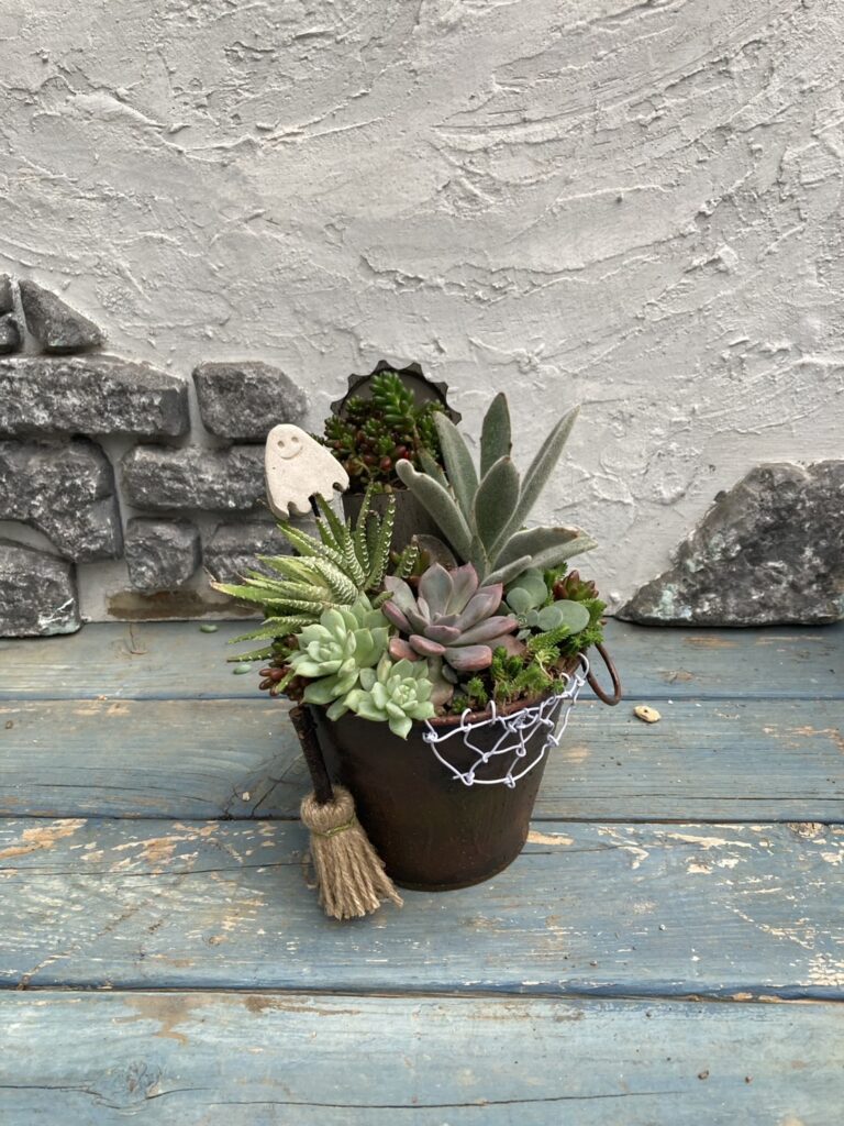 10月講座皆さまの作品です♪ 「多肉植物でジャンクなハロウィン寄せ植え🎃+プチDIY」