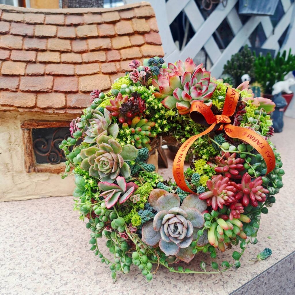 ⑨初めて作る多肉作品。 リースにチャレンジしています。 ・多肉独特のピンセット使い ・こんもり、ギュギュッと可愛くなる方法 ・お顔の可愛いメインの配置 ・動きの出る多肉の種類の使い分け などなど… 可愛い物作りにはたくさんの"Manabi"がありますが、たくさんの感動に繋がります。初めての制作ですがとてもステキなリースになりました。