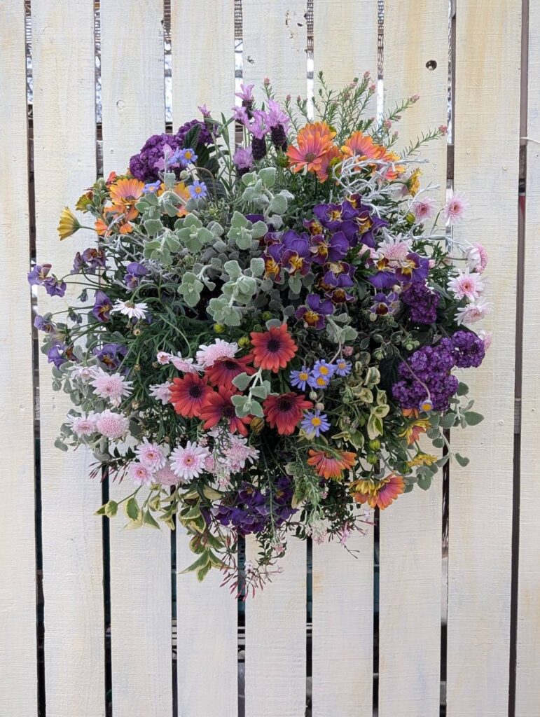 苗の選び方や植え込み、葉物を上手に使い伸びやかに作るコツ、またハンギングでは上下左右のバランスがとても大切なことをアドバイスしました。